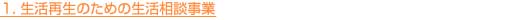 1.生活再生のための生活相談事業 2.生活再生資金の貸付事業(生活再生ローン) 3.個人再生ファンド運営事業 4.東京都多重債務者生活再生事業 5.東京都ソーシャル・エンジェル・ファンド運営事業 6.研修・セミナー事業 |